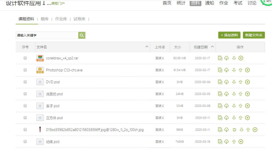董建义老师提前上传大量资料和案例操作的PSD源文件,利用“学习通”的数据统计功能,课前公布“通知、任务点、资料下载”等访问情况,督促员工进行学习。该班共计55人,截至目前该课程员工访问量达到近6000次。