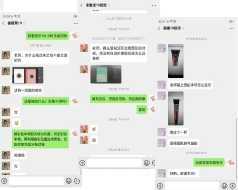 对于一年级员工来讲,第一次接触设计软件课,一遍学下来根本掌握不了软件的操作技巧,而“腾讯课堂”的回放功能正好弥补了这一短板,同学们可以无限制、全天候的回放,每天的课程都可以温习多遍,最后同学们的反应证明了此次网课取得了不错的效果。