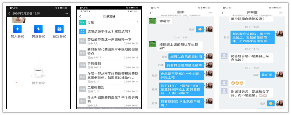 甘露老师作为系主任,不断发挥先锋模范作用,认真钻研“超星学习通”APP和校园网络教学平台的各项功能及技巧,同时结合“腾讯会议”APP和微信群聊,总结出一套和专业课程相适应的网络教学方法,使课堂教学、师生互动、作业测验、纪律检查等各个环节分类管理、切换自如,并通过网上教学实验发现效果良好,员工讨论和回答问题比课堂更加积极,逐将此方法推荐给本院其他老师。同时,每当学校交流群里有老师咨询时,她都是知无不答、积极帮助,和其他教师一起共同做好“停课不停学”的各项工作。