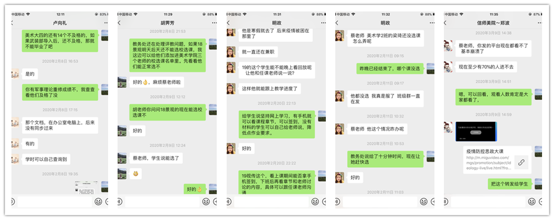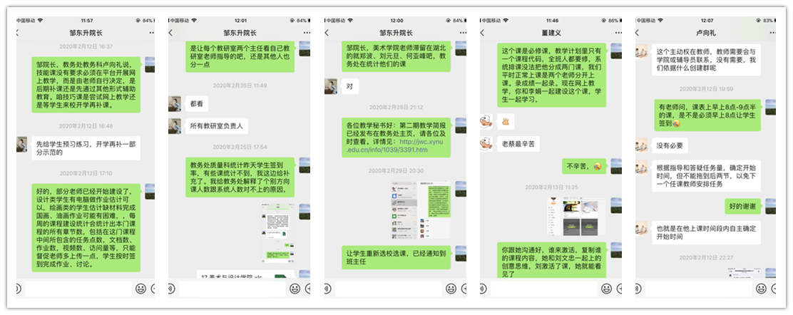 教学秘书蔡森林老师及时向主管教学的邹东升经理和师生传达教务处的各项通知和文件,在邹经理带领下确定教学实施方案、教学质量监控等问题,并及时跟教务处老师沟通网上教学、员工选课、员工成绩等各种问题。网上教学对教师是新事物新挑战,教务处组织超星公司通过网上教学细节视频讲解、微信群、QQ群技术咨询的方式,对全校教师进行了细致的培训,云顶yd2223线路检测组织全体教师积极参与培训,参与率为100%,并由蔡老师耐心细致地给老师们解答问题,指导超星网络教学平台和学习通的具体操作,蔡老师提前做功课,有疑问立即咨询超星公司客服人员,对老师们提出的问题做到有问必答,以保证每位任课教师都能顺利高效地开展网上教学。蔡老师对员工选课、网上学习、上学期成绩问题等遇到的各种问题也都耐心细致地一一解答、逐项处理,保证每名员工都积极投入到网上学习中去。