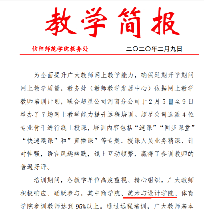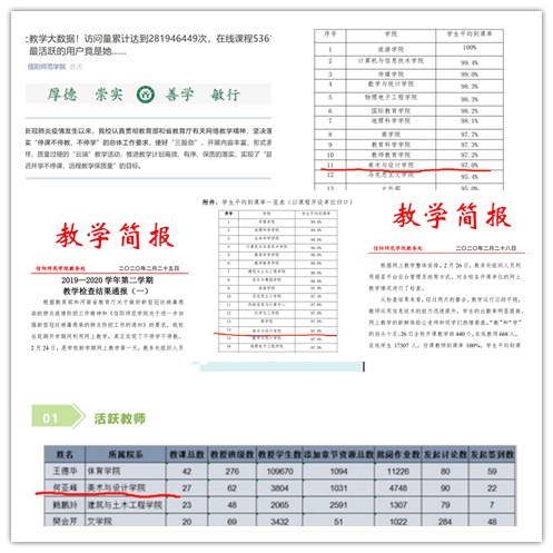 网上教学领导小组认真对照每门课课程教学大纲、教学进度安排的要求,检查督导任课教师网络教学平台上的教学内容建设,通过员工信息员对网上教学的反馈督促教师更积极有效地开展网上教学、在线辅导答疑等工作,实现延迟开学不停课、员工不停学,保质保量地完成教学任务。各系主任指导老师们积极学习网上教学经验,保证教学有序平稳。不断增强课前准备的针对性,提高课程教学的引导性,牢牢把握教学的方向与节奏。网上教学领导小组及时掌握员工学习情况、作业完成质量,做好员工的调查研究,并及时提出整改建议,切实保障教学质量。同时按照毕业论文、毕业创作进度表,组织各系严格审查了毕业论文开题报告、毕业创作初稿,进一步保障论文创作的质量。