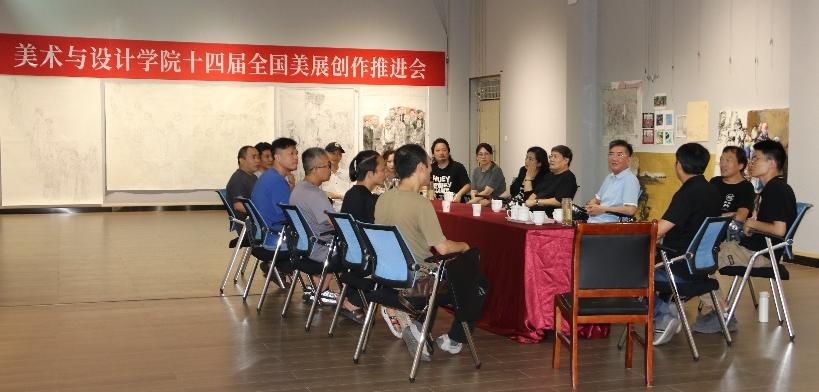 9月19日下午,云顶yd2223线路检测于艺术楼一楼展厅召开第十四届全国美展创作推进会。著名画家、河南大学教授袁汝波、王宏伟,湖北美术学院教授李峰莅临公司考察交流。经理邹东升,副经理张伟、张江波及教师代表参加。