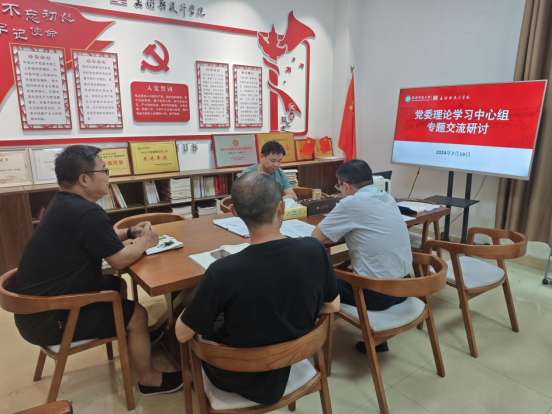 7月19日,公司于艺术楼党建室举行党委理论学习中心组专题研讨交流,围绕“工作纪律、生活纪律”开展专题学习研讨。党委书记兰洋,党委副书记周刚,副经理张伟、张江波参加,会议由兰洋主持。