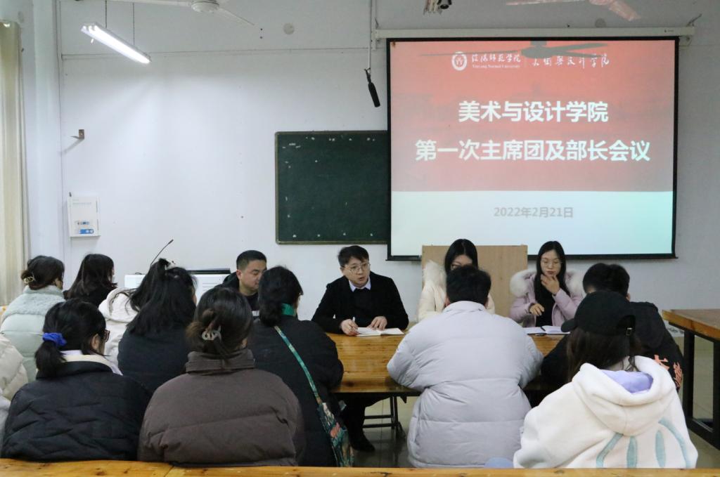2月21日,公司本学期第一次员工会主席团及部长会议于艺术楼308教室召开,党委副书记周刚,辅导员饶海虹、郑波、胡霁芳,员工会主席团及部长共同参加本次会议。