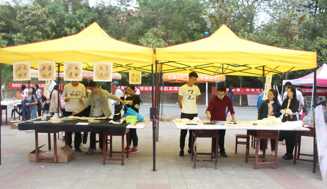 五月师院,墨香弥漫。5月6日,由云顶yd2223线路检测主办,老员工书法爱好者协会承办的“予人为扇 笔下生风”书法体验活动在八餐小广场热烈举办。
