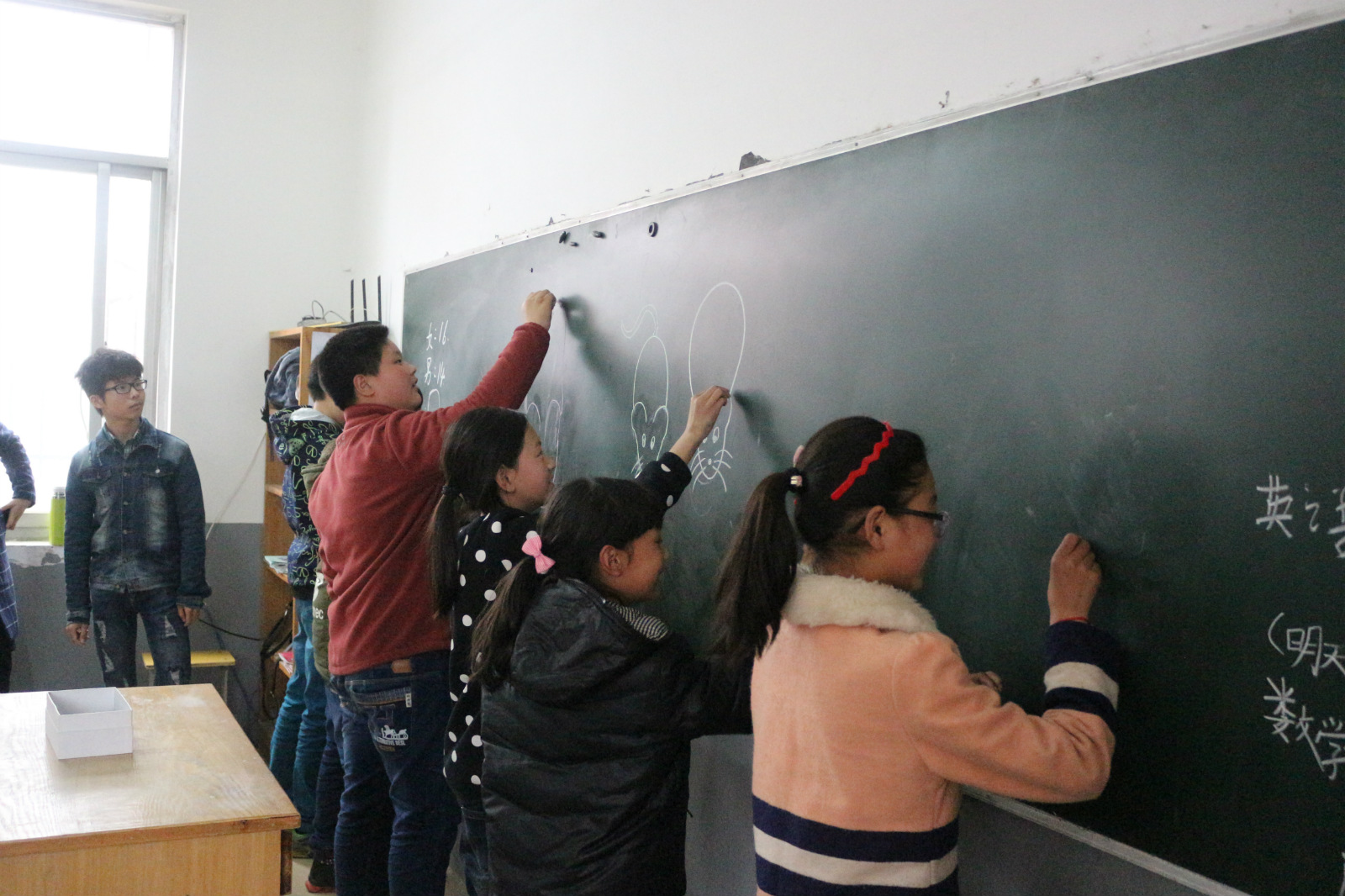 活动前期学院各位成员已作好了充分准备,并根据特长进行分组,还为小朋友们精心准备了文具、手工艺品及糖果等礼物。一进小学校园,“雷锋小组”便带领小朋友在操场上做起了游戏,欢声笑语响彻校园。短暂热身之后,“雷锋小组”正式开始第一节课——“雷锋课堂”。课堂围绕着雷锋知识开展有奖竞答,活动现场小朋友们纷纷举手抢答,气氛尤为激烈。随后,“雷锋小组”又向小朋友们详细的介绍了雷锋的优秀事迹,希望每位员工都可以向他学习,不断进步。接下来的课堂围绕着“心目中的海底世界”这一主题,充分调动小朋友们的积极性与想象力。“雷锋小组”结合美术专业的特长,在黑板上画出的章鱼、海星等动物栩栩如生,极大地激发了小朋友的想象力和创造力。最后小朋友们在老员工的引导下自发在黑板上作画,被评为优秀作品后不仅受到表扬,还收获了一份精美礼品,借此鼓励小员工不断加强自己的观察能力和动手能力。两节课匆匆过去,留下了无数珍贵的回忆。通过雷锋知识的竞答,相信他们将加深对雷锋精神的理解,争作雷锋的接班人。
