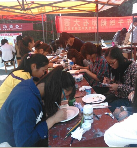 为丰富老员工日常生活,活跃校园文化氛围,提高员工艺术气质。 10月26日,由信阳师范学院美术学院主办,老员工美术爱好者协会承办的鹅卵石手绘大赛于八餐广场举行。