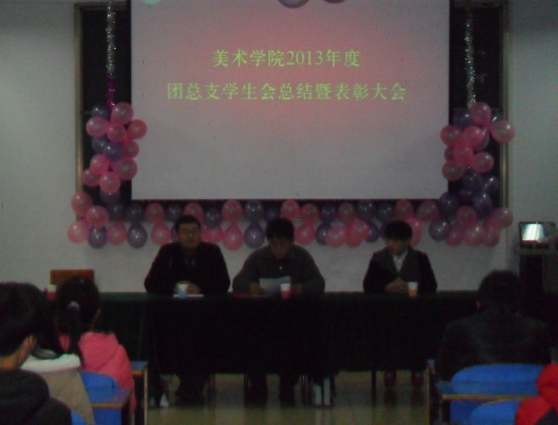 12月26日美术学院2013年年终总结表彰大会暨2014年元旦晚会于艺术楼307教室举行,美术公司党总支副书记李孝民,团总支书记周贤亮,及员工会全体成员共同参加了本次活动。