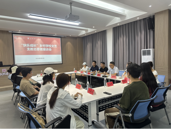 9月9日,在教师节即将来临之际,公司在实训楼艺言堂成功举办了一场意义非凡的“快乐成长”乡村学校文艺支教志愿者座谈会。经理邹东升、公司党委副书记周明成、辅导员郑波与已完成支教任务的4名志愿者和即将踏上支教新征程的8名新志愿者共聚一堂,分享经验,展望未来。