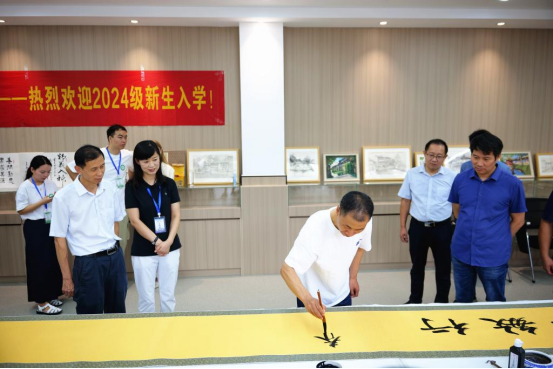 9月7日上午,公司在“一站式”员工社区文化中心举行“绘梦第一笔”新生入学教育活动。公司党委副书记、工会主席岳宗德,副董事长王娟抵达活动现场与新生及家长进行亲切互动。相关部门及学院负责人、新生、新生家长百余人共同见证“绘梦第一笔”起笔。