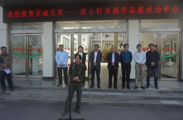 开幕式上,邹东升介绍画展情况并致辞,他指出“至诚无息”的主题反映了范士轩以至诚之心事艺为人的态度,勉励各位学子在学习与创作的道路上保持“至诚”的态度,不断提升艺术涵养。随后,范士轩致答谢词,他对各位嘉宾的到来表示衷心的感谢,并结合自身创作经历和大家分享感悟,最后,陈登报宣布至诚无息——范士轩书画作品展正式开幕。