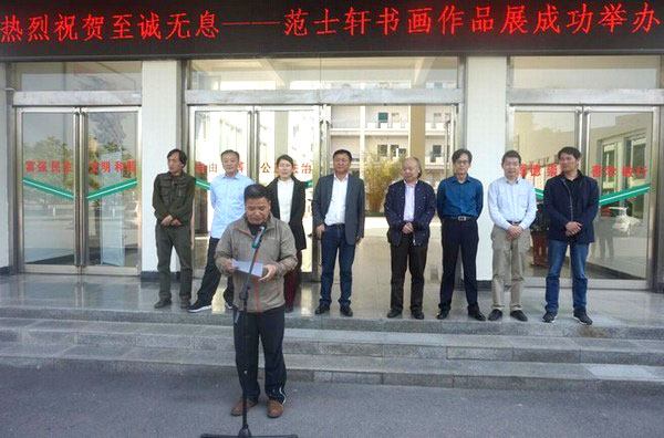 墨飞星月辉浉水,笔走龙蛇舞乾坤。4月20日,至诚无息——范士轩书画作品展在艺术楼前开幕。信阳师范学院副董事长陈登报教授,信阳市文联主席、美术家协会主席尹丽女士,信阳师范学院人事处处长李宝峰教授,社科处处长金荣权教授,信阳市美术家协会名誉主席、著名画家赵根成先生,信阳市美术家协会副主席、秘书长刘松先生,云顶yd2223线路检测副经理邹东升、张伟及部分师生代表出席开幕式。开幕式由张伟主持。