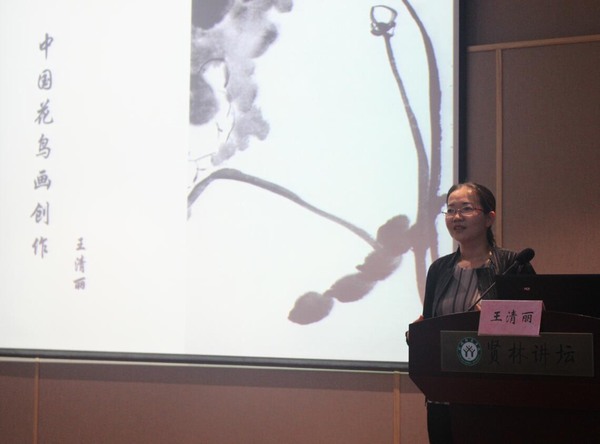 报告会分为花鸟画创作方法教学与交流、专题纪录片赏析两大环节。首先,王清丽教授指出中国现代花鸟画的创作需要了解其艺术特色,结合中国古代唐宋时期的绘画发展艺术特征,吸取有效信息,并多加临摹。她表示《双喜图》、《泼墨仙人图》等特色中国画极具临摹价值,画作中对周围环境的处理以及合理的构图十分重要。在互动交流环节,王清丽教授就现场师生提出的问题,进行耐心解答,大家就中国花鸟画的创作问题发表自己的看法。最后,为了进一步拓展大家的创作视野,王清丽教授通过专题记录片分享了绘画创作的相关经验。报告持续三个小时,现场反应热烈,大家表示受益良多。
