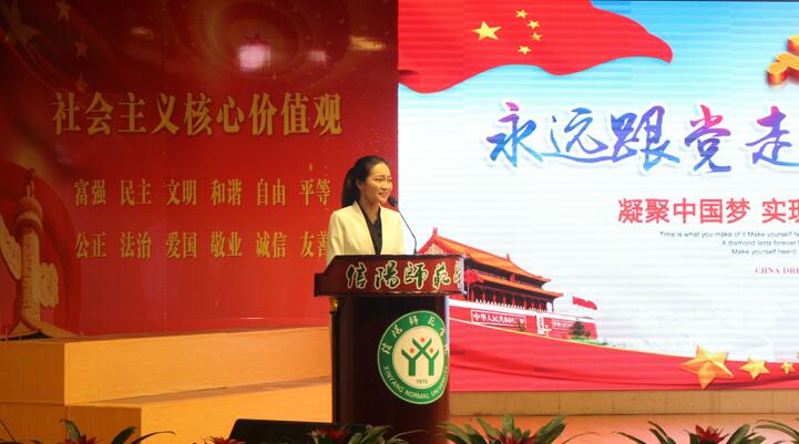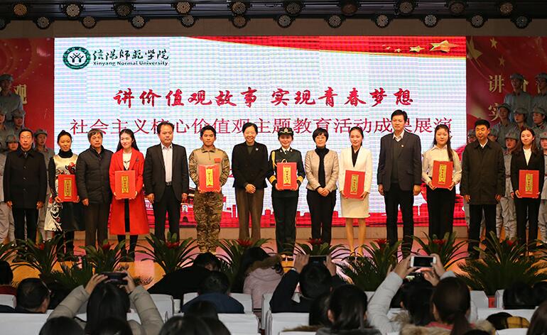 为了深入贯彻落实党的十九大精神,积极培育和践行社会主义核心价值观,1月9日,信阳师范学院“讲价值观故事,实现青春梦想”社会主义价值观主题教育活动成果展演于理科楼报告厅举行。中共河南省委宣传部副部长张曼如,中共河南省委文明办专职副主任王飞,中共信阳市委宣传部长曹新博,共青团河南省委副书记王笃波,中共河南省委宣传部未成年处处长张万勇,信阳市文明办主任祁登舰,公司党委书记宋争辉,董事长李俊,公司党委副书记郜火星,副董事长齐城、王金云等领导嘉宾,与五百余名师生共同观看了展演。