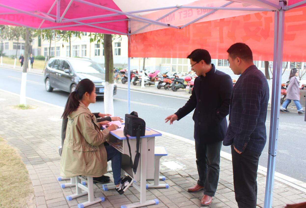 为及时向公司2018级毕业生提供最新就业信息,增加公司毕业生的就业机会,11月11日,信阳师范学院2018年冬季双选会在西篮球场热烈举行。公司积极响应学校号召,在西操场设立值班棚,及时为公司求职学子提供帮助。公司党委副书记杨轶中带领辅导员张锐、郑波亲临现场指导活动。