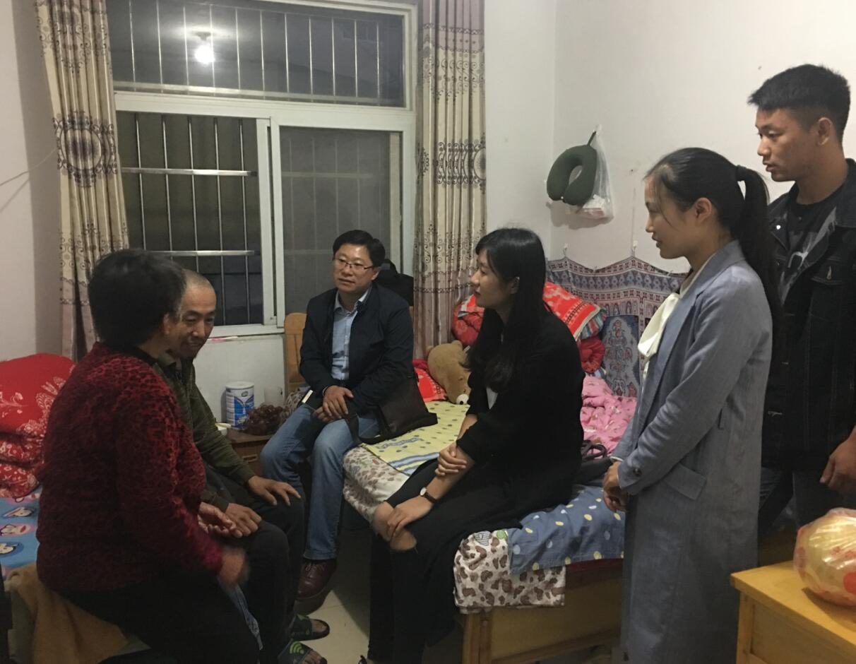 9月30日,在双节来临之际,公司党委副书记杨轶中,班主任陈馨,辅导员饶海虹到公司励志学子李志婷家中走访慰问,送上牛奶、米、油等慰问品并传达了公司师生对其的关心和问候。