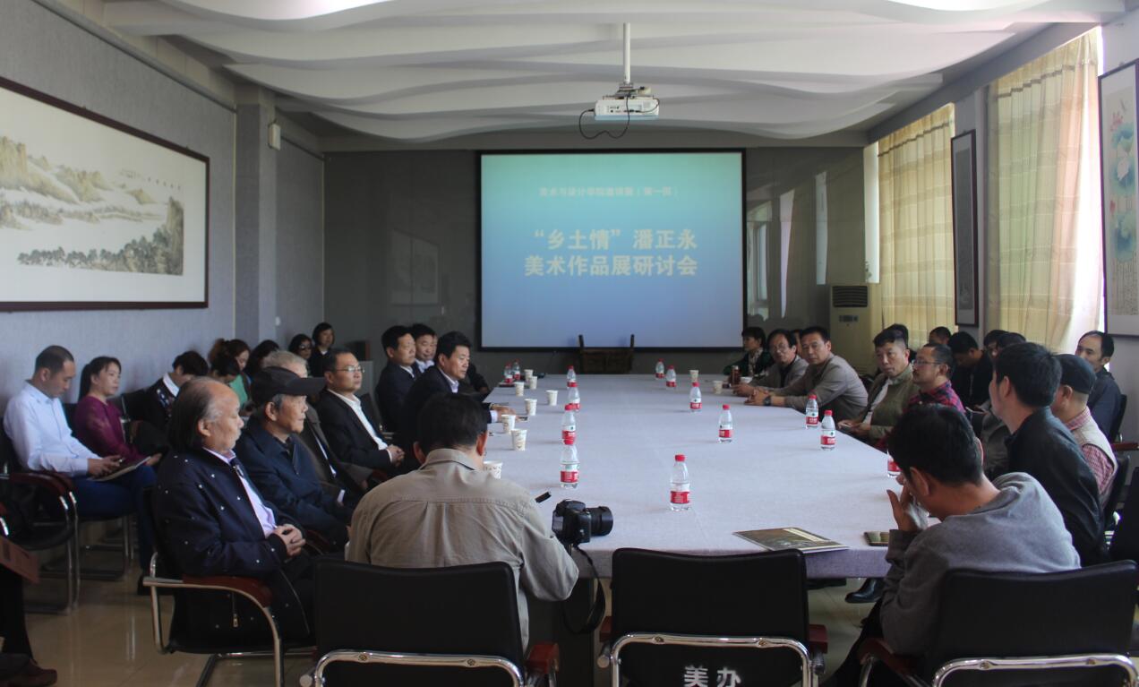 4月22日,云顶yd2223线路检测于艺术楼会议室召开“乡土情”潘正永美术作品研讨会,信阳师范学院副董事长齐城教授,中国美术学院张建宏教授,云顶yd2223线路检测副经理邹东升、张伟、李孝民,信阳市教育局、市美协、潢川县文联、潢川县美协、潢川幼儿师范学校、信阳市南湖书画院等相关负责同志出席了研讨会。