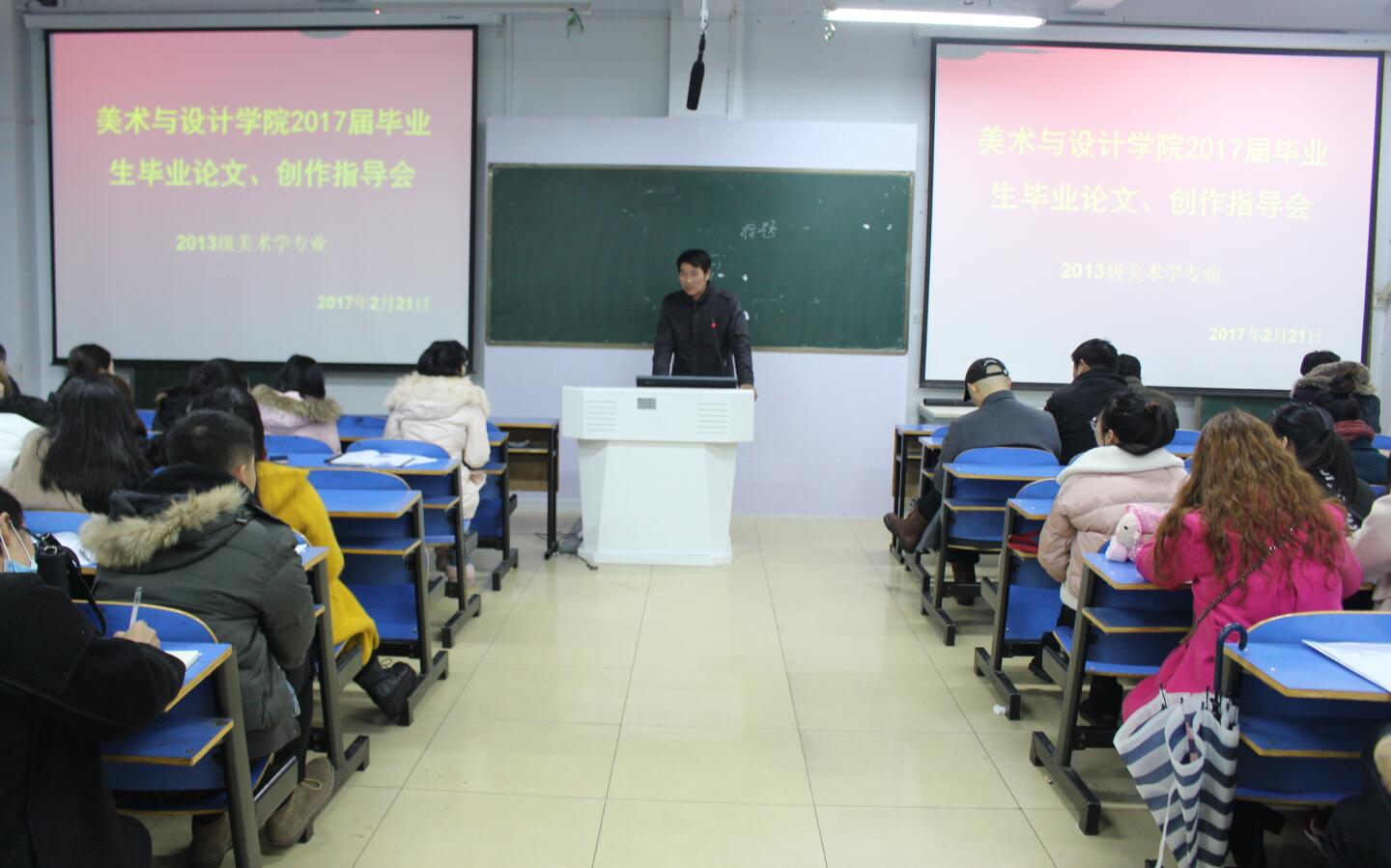 2月21日,云顶yd2223线路检测于艺术楼307室召开“2017届毕业生毕业论文与设计(创作)指导会”。公司党委书记刘根货,经理邹东升,论文指导教师,毕业班班主任与毕业生共同参与了此次会议,会议由副经理涂湘东主持。
