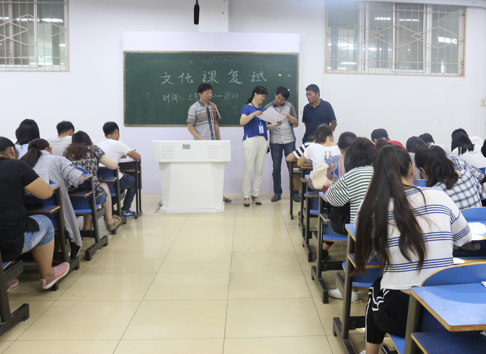 美术学院于9月18日上午在艺术楼307室及教九205室开展文化科目复测工作,于下午在教八楼一至四楼14个教室开展专科科目复测工作。考试开始前,监考人员逐一比对考生的身份信息,有序引导考生依次进入考场进行答题。考试过程中,16级新生严格遵守考场纪律,认真完成相关试题。期间,公司党委书记周子良、副书记李孝民、副经理邹东升、教学秘书涂湘东深入考场,逐一巡视考试情况。周子良要求,新生入学资格审查作为维护高考公平中的最后一环,不仅是杜绝徇私舞弊行为的有效途径,更是维护社会公平正义的必要手段,所有考务人员要增强法律意识,为维护学校办学声誉和形象、确保人才培养质量贡献一份力量。