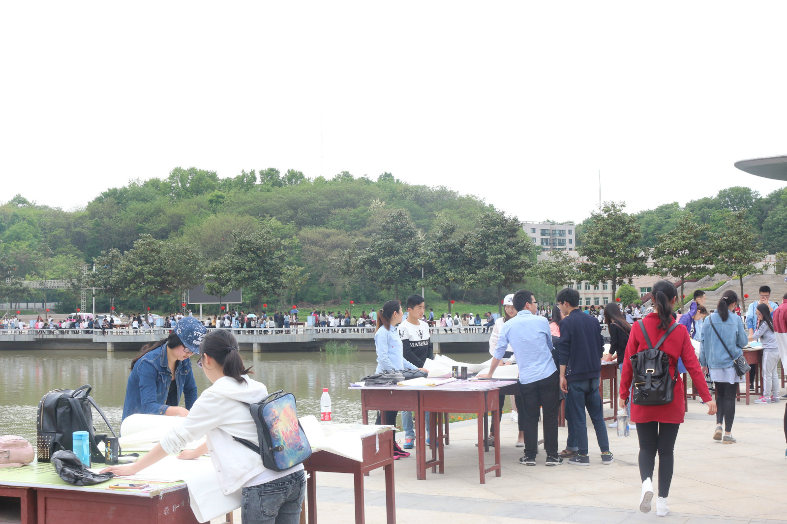 活动伊始,参赛者根据已分配好的位置入座。大赛作品大致分为四个类型,即绘画、书法、篆刻、手工制作。绘画又包括素描、水粉、油画、山水、版画等形式。各位参赛者充分发挥自己对校园的想象,将自己最美好的记忆表达于画纸之上,笔墨之中,篆刻之下。另一边的舞蹈更是把活动现场气氛渲染的分外热烈,让参赛者充满激情。参赛者用不同的手法描画着同样的心情,表达着同样的情思,以独特的视角记录校园美景和师生风采。现场的作品或温婉而曰,或豪放不羁,或唯美秀丽,或奇思妙想,皆把师院美景表达的淋漓尽致。