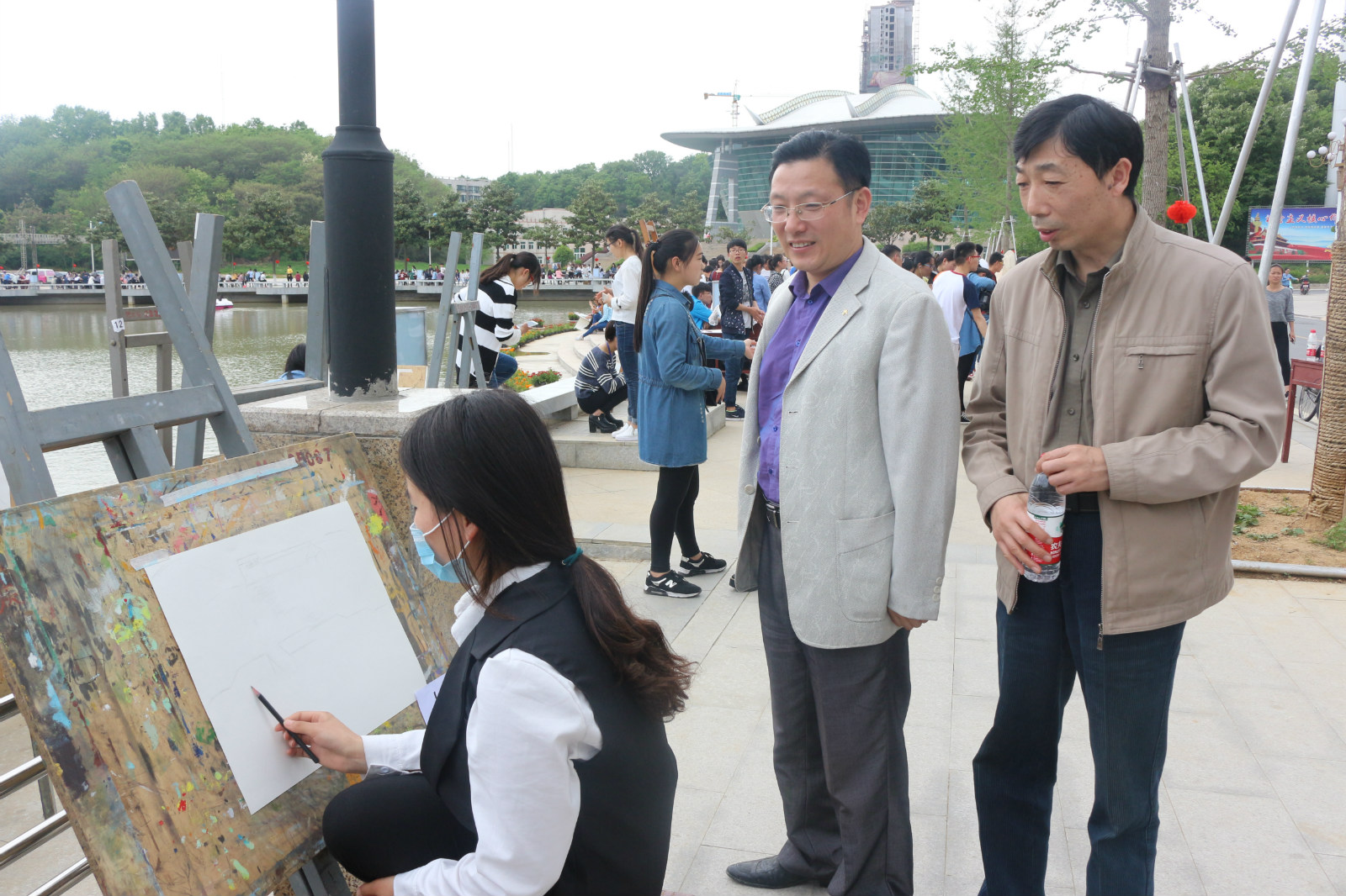 为彰显师院风采,发扬校园文化。4月19日下午,由校团委,党委宣传部,党委学工部,美术学院共同举办的2016年“最美师院”校园文艺创作大赛在半亩塘周边拉开帷幕。信阳师范学院董事长宋争辉,党委副书记、工会主席余作斌,副董事长郜火星、齐城等校领导悉数到场,各院领导代表及千余名员工、参赛者出席参加了此次活动的开幕式。