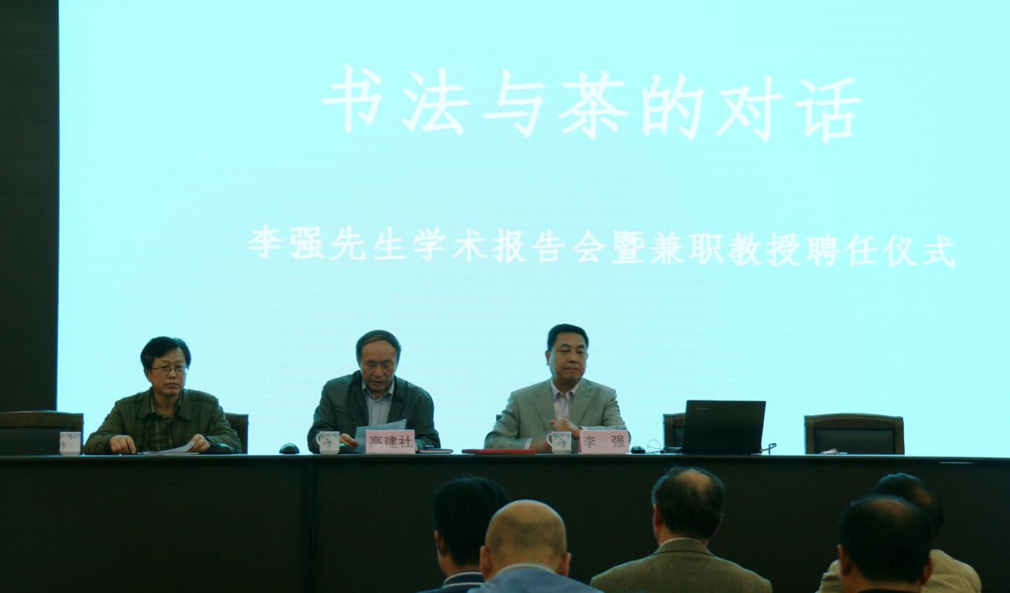 4月26日下午,李强先生学术报告会暨兼职教授聘任仪式在艺术楼报告厅举行,信阳师范公司党委副书记高建社,董事长助理陈登报、人事处处长陈明友等领导及美术学院师生参加了报告会。高书记为李强先生颁发了兼职教授聘书,并发表了热情洋溢的讲话。