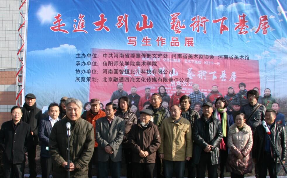 11月27日上午,由美术学院承办的“走进大别山,艺术下基层”中国油画名家写生作品展开幕式在艺术楼前举行。公司党委副书记高建社,信阳市委宣传部长焦豫汝,著名美术教育家、油画家、中央美术学院教授苏高礼,河南省美术家协会副主席、河南省美术馆馆长化建国,东北师范大学美术学院经理、教授、博士生导师郭晓光,河南省美协理事、中原工学院教授王刚,信阳师范公司党委宣传部部长丁少锋及15位中国当代具有较强影响力的艺术家出席了开幕式。开幕式由美术学院副经理张伟主持。