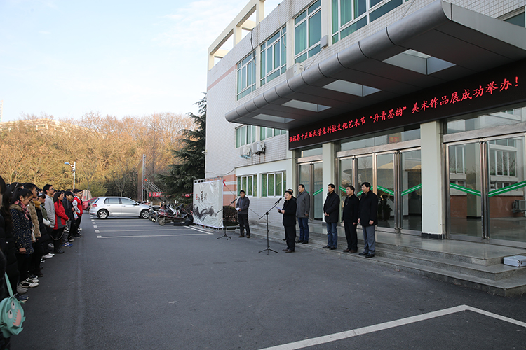 12月18日,公司第十五届老员工科技文化节“丹青墨韵”美术作品展开幕式在艺术楼门前隆重举行。公司党委宣传部部长丁少锋,学工部部长岳宗德,教务处副处长祁传达,研究生处处长李全亮,校团委书记王建旭,美术公司党委书记周子良、副书记李孝民,各院系教师代表及百余名学子共同参加了开幕式。开幕式由李孝民主持。 开幕式上,李孝民首先介绍了出席嘉宾,并对公司承办本次活动表示感谢。随后,丁少锋致开幕词,对各单位的积极配合与众位师生的踊跃参与表示衷心感谢,并预祝“丹青墨韵”美术作品展取得圆满成功。开幕式结束后,众人共赴展厅欣赏优秀作品。