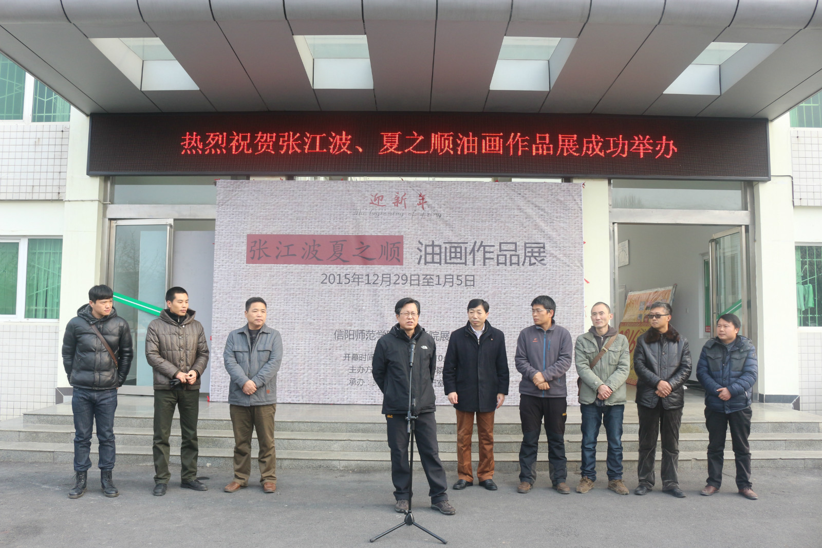 12月29日上午,公司举办的张江波夏之顺油画作品展开幕式在艺术楼前隆重举行。公司经理刘根货、党委书记周子良、副经理张伟、党委副书记李孝民,油画教师张江波、夏之顺、赵志杰、张涛、张洪涛等领导老师及二百余名员工共同参加了开幕式。开幕式由周子良主持。