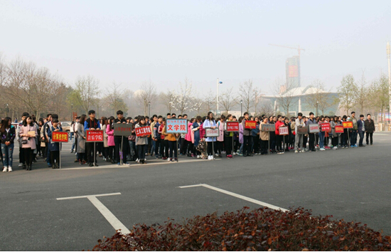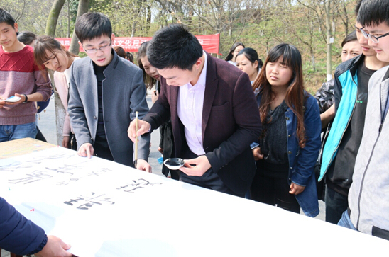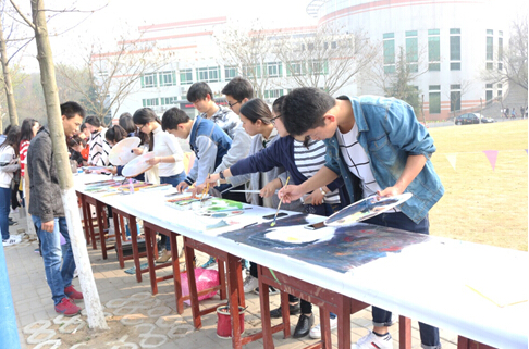 开幕式结束后,各参赛代表队在团总支老师和员工会的带领下,有序进入思齐路东侧进行书画创作。