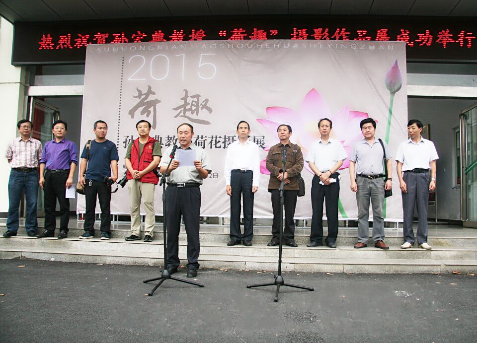 9月29日,在国庆暨信阳师范学院建校四十周年即将来临之际,信阳师范学院原党委书记孙宏典教授以“荷趣”为主题的摄影展于艺术楼展厅隆重举办。摄影展开幕式在艺术楼前举行,信阳师范学院原党委书记孙宏典教授,党委副书记高建社,信阳市摄影家协会主席石文涛,信阳市摄影家协会名誉主席黄泽远,名誉副主席、秘书长柴豫海,名誉副主席、市委宣传部副调研员刘平,美术学院经理刘根货,美术公司党总支书记周子良,美术学院副书记李孝民,美术学院副经理张伟及部分师生出席了开幕式。