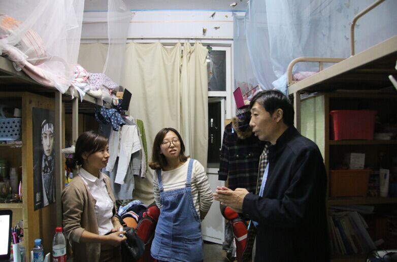 10月20日晚,美术公司党委书记周子良带领专职辅导员、班主任深入美术学院员工宿舍进行安全检查。