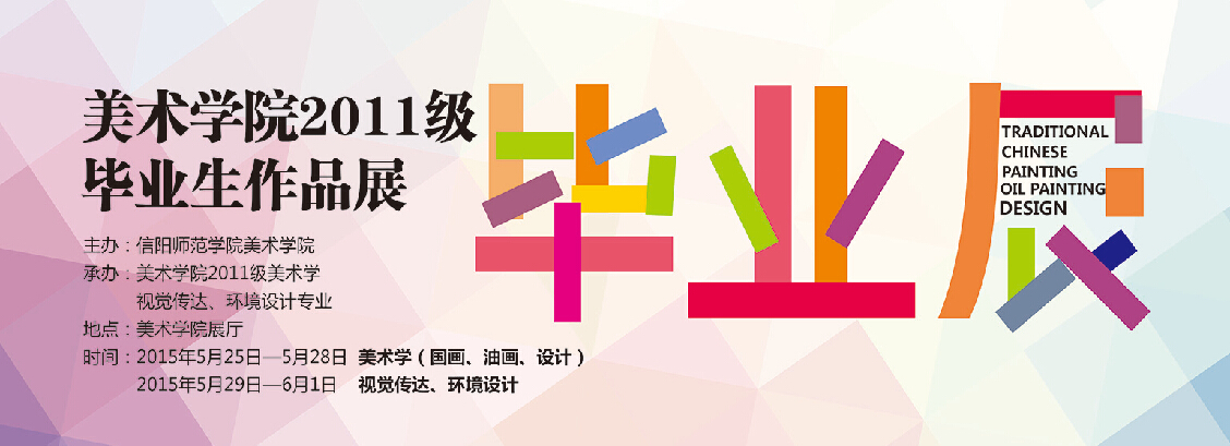 毕业生作品展不仅是毕业生学习的成果展,也是全校师生艺术文化交流的机会。本次毕业展共分两个阶段:5月25日-5月28日,2011级美术学专业毕业生作品展。5月29日-6月1日,2011级平面设计、环境艺术设计毕业生作品展。欢迎广大师生前来参观!