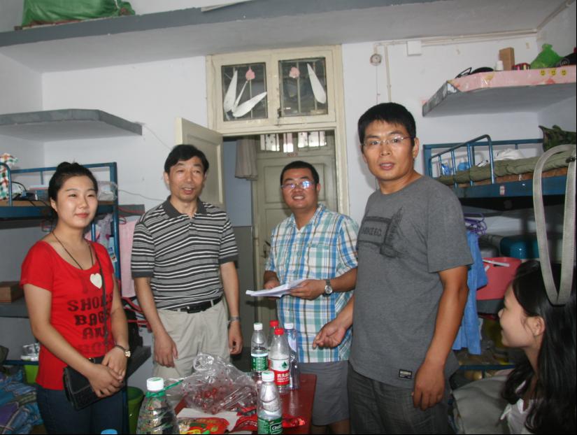 9月6日下午,美术公司党总支书记周子良,副书记李孝民带领各专业辅导员及员工会主要干部赴新生宿舍看望慰问新同学。