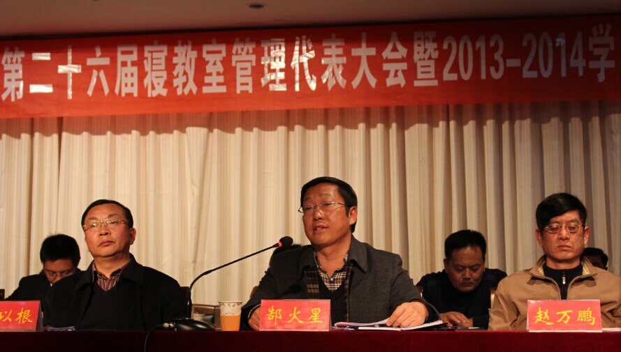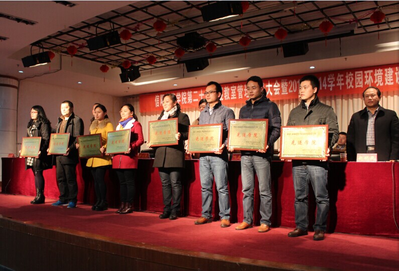 张启军老师发表讲话,为大会拉开帷幕。会议伊始,后勤服务总公司总经理林兴岚对2013——2014学年校园环境建设工作进行了总结,列举了本学年学校用于环境建设的工作经费及各个学院开展的形式多样的寝教室管理活动。接着,武装部部长赵明民宣读文件,对年度寝教楼管理先进学院、先进单位和先进个人进行了表彰,并希望受表彰的单位和个人珍惜荣誉,再接再厉,再创佳绩,大家的脸上都洋溢着收获的喜悦。美术学院教九205教室被评为“先进教室”,充分展示了公司对于校园环境建设的成果,体现了公司对寝教室管理的重视性以及对学校工作的高度配合。随后,校团委书记耿劲松,后勤管理处处长陈以根,先进学院代表和先进个人依次进行了讲话。最后,信阳师范学院副经理郜火星对此次大会做了总结,对会议的成功召开表示了热烈地祝贺,对各学院、后勤管理部门做出的贡献给予了充分的肯定。