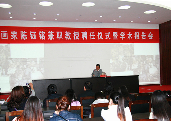4月18日上午,信阳师范学院美术学院于艺术楼报告厅举行了陈钰铭先生兼职教授聘任仪式暨学术报告会。信阳师范学院副董事长刘彦明、美术学院经理刘根货、党总支书记周子良、副经理张伟、副经理邹东升、信阳市美术家协会原主席赵根成、信阳画院经理兼美术协会副主席李一冉、信阳市书协付泽宇及美术学院全体师生和信阳市广大美术工作者参加了本次活动。活动由张伟副经理主持。