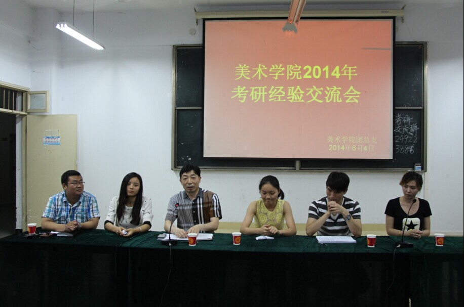 6月4日,美术学院在艺术楼307教室举办了2014年考研经验交流会。美术公司党总支书记周子良、团总支书记周贤亮、艺术设计教研室刘文忠老师与百余名有志于考研的员工一起参加了本次交流会。