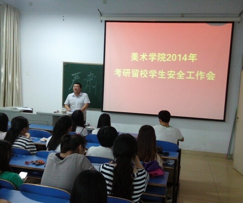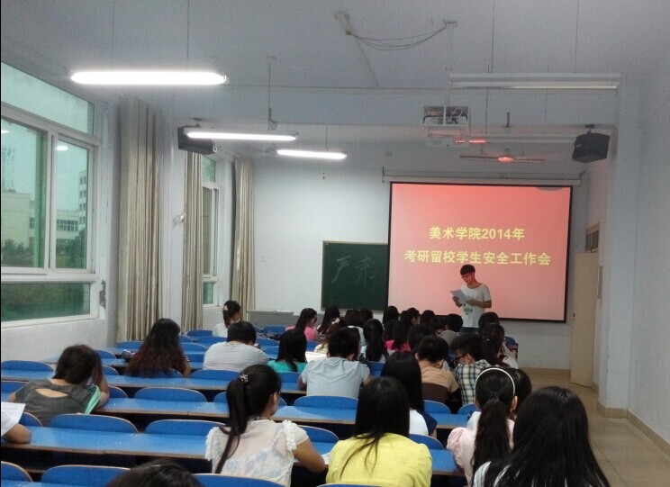 6月26日,美术学院在艺术楼306召开2014年考研留校员工安全工作专题会,美术学院团总支书记周贤亮及67名留校考研同学参加了此次会议。