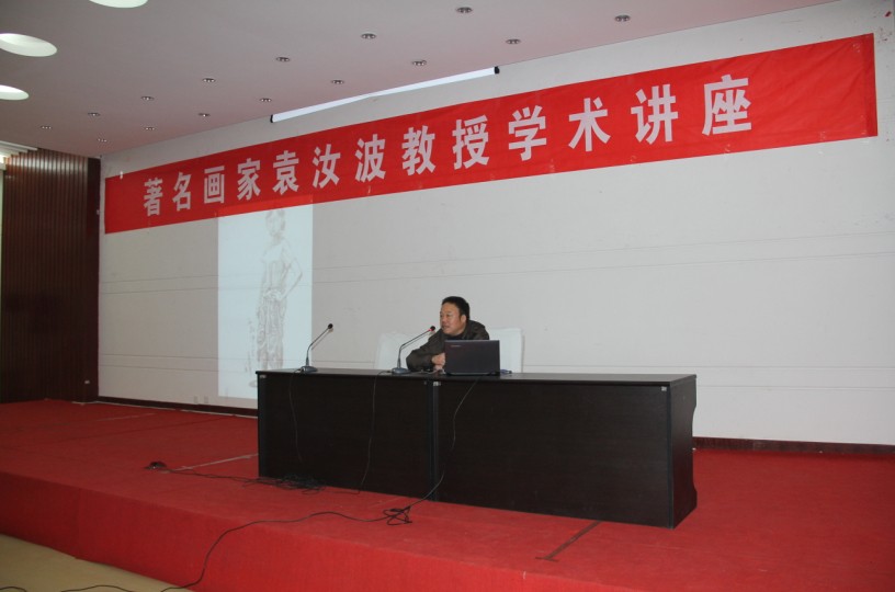 12月19日,应美术学院邀请,河南大学艺术学院袁汝波教授来公司讲学,在艺术楼一楼报告厅作了题为“写意人物画创作”的学术报告。美术学院师生及信阳市部分画家300余人共同聆听了报告。