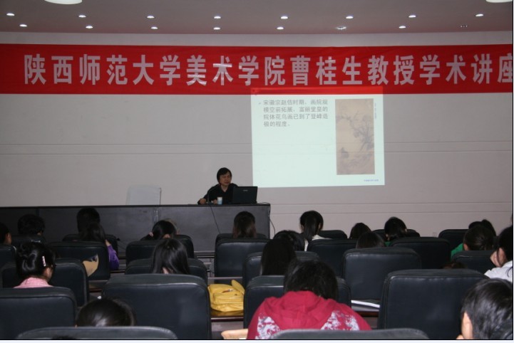 4月23日,应美术学院邀请,陕西师范大学美术学院曹桂生教授来公司讲学。曹桂生教授在艺术楼报告厅为美术学院200余名师生作了题为“中国画的艺术与审美”的学术报告。报告会由美术学院副经理汪俊林主持。
