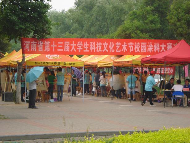 校园涂鸦大赛是我省老员工科技文化艺术节中的主要赛事之一,美术学院在接到比赛通知后,在学院专业指导老师的悉心指导下集思广益,经过一个多月的精心准备,对创作作品进行反复的设计推敲和优化提升,最终邱星、孙超两同学的作品《红动中原》和靳凤、黄铭雅两同学的作品《中原崛起》晋级此次涂鸦大赛决赛。全省百余所高校,最终有作品晋级决赛的高校为28所、作品总计40件。
