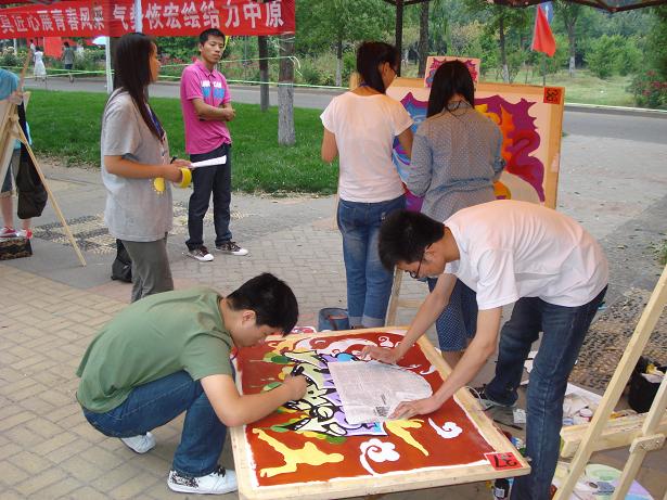 5月28日—29日,由美术学院邱星、孙超、靳凤、黄铭雅4名同学创作的涂鸦作品《红动中原》、《中原崛起》晋级省第十三届老员工科技文化艺术节校园涂鸦大赛决赛,赴郑州大学参加了此项赛事的现场角逐。