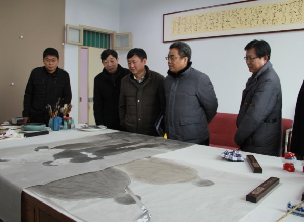 随后,在美术学院领导班子陪同下,卢克平经理先后参观了美术学院临摹室、邹东升老师工作室等。