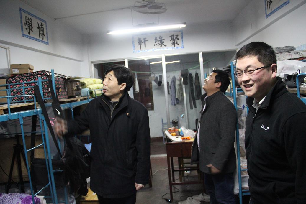 走访过程中,周子良和辅导员、班主任与同学们进行了深入亲切的交流。“最近学习感觉怎样?”“生活上有什么困难吗?”“大家很快要毕业了,工作找的怎么样,有什么需要学院做的?”几句真挚而朴实的话语,深深地烙印在同学们的心里。学院领导和老师面对面地了解了同学们近期的思想动向、学习情况、生活状况以及学习和生活上的具体需求,为美术学院下一步员工教育和管理工作的顺利开展提供了直接的参考依据。