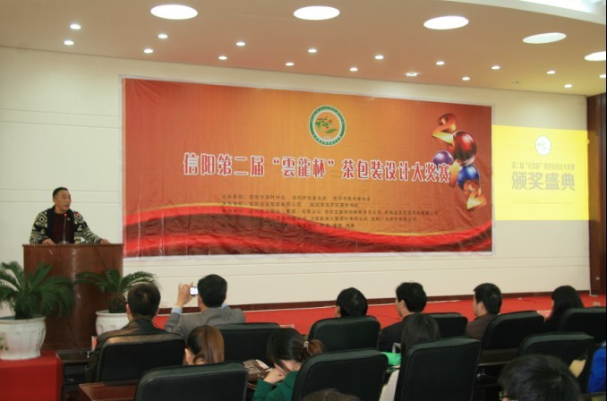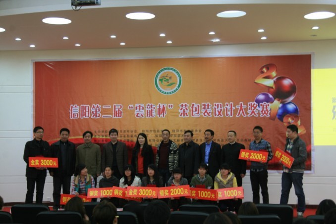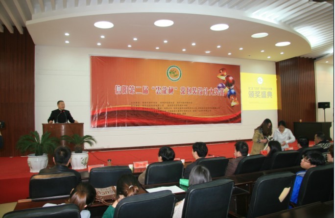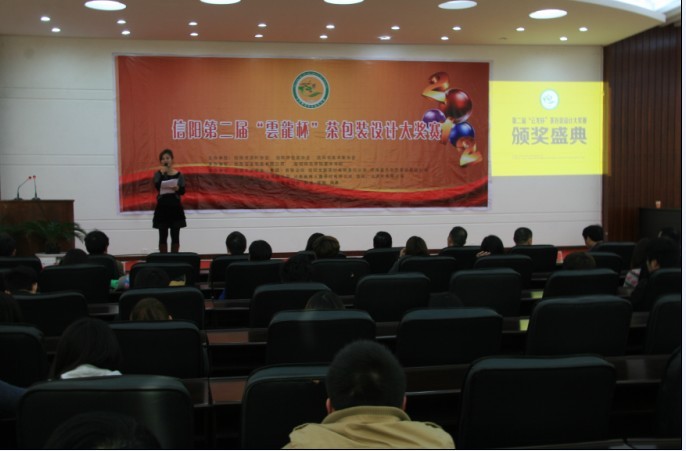 3月27日下午,由信阳市茶叶协会、包装协会、美术协会主办,信阳师范学院美术学院承办的“信阳第二届‘云龙杯’茶叶包装设计大赛”颁奖典礼在信阳师范学院艺术楼报告厅举行。信阳师范学院教务处副处长李宝峰,美术公司党总支书记周子良,副经理汪俊林、张伟,信阳市茶办办公室主任张久谦,信阳市包装协会会长、云龙包装有限公司董事长陈永强,信阳市文联、美术家协会副主席殷丽等活动筹办方代表共同出席了此次颁奖典礼。大赛获奖选手、美术学院师生近200人参加了本次颁奖典礼。