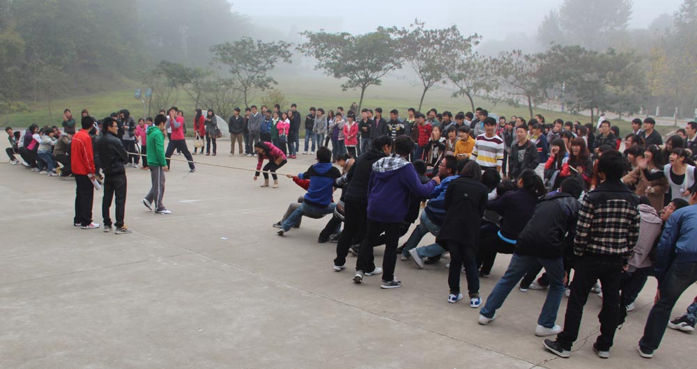 10月30日上午8点,由美术学院举办的秋季拔河比赛于艺术楼前举行,美术学院09级、10级、11级员工以班级为单位组队参加了此次比赛。