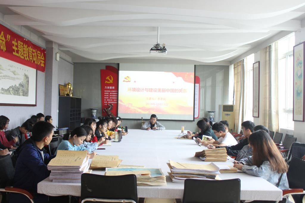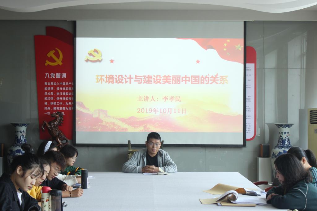 10月11日,公司副经理李孝民在艺术楼二楼会议室为学院师生党员作了题为 “环境设计与建设美丽中国的关系”的专题党课。公司教工二支部和艺术设计员工第二党支部党员和发展对象共同聆听了此次党课。