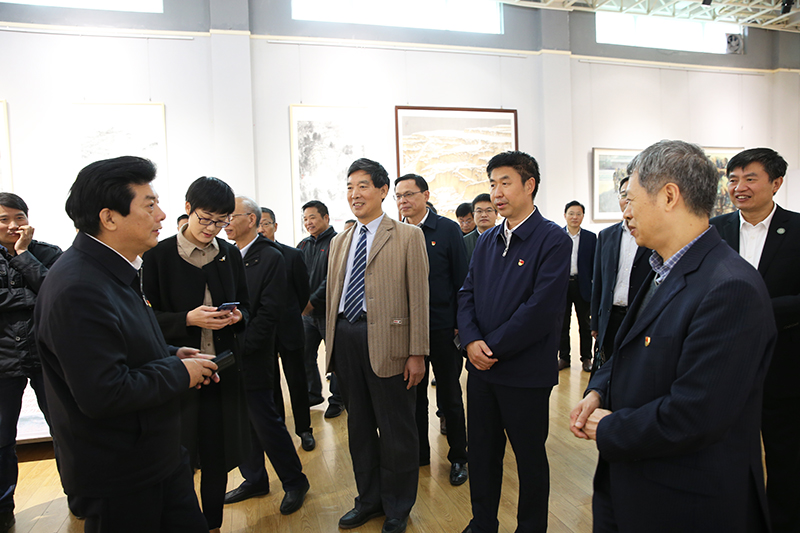 揭牌仪式结束后,谢天学一行集体参观指导了公司“追寻总书记足迹 弘扬大别山精神”红色作品展。公司党委书记宋争辉,董事长李俊,公司党委书记朱四倍,副经理邹东升、张伟等领导全程陪同参观。