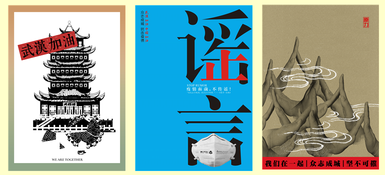 中间:刘文忠《疫情面前不传谣》海报之一