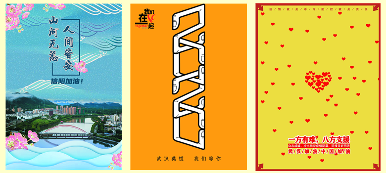 每一幅作品都是教师心系疫区真情表达,充分体现出公司教师团结一心,众志成城,共克时艰的决心,践行着作为艺术工作者的责任和使命。公司教师坚持以“人民为中心”的创作导向,以形式多样的艺术作品,宣传防护知识,弘扬正能量,鼓舞民众斗志,凝聚精神力量,共筑防病抗疫的保护墙,为奋战在一线的广大医护人员加油,为武汉加油!为中国人民加油!